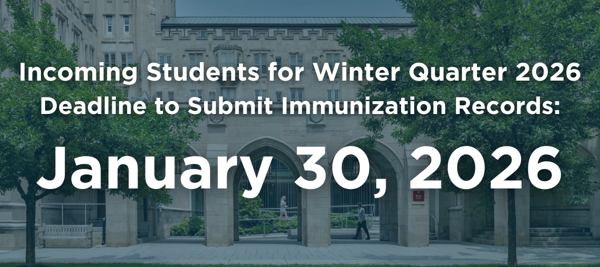 New students registered in any University on-campus program that begins Winter Quarter 2026 will need to show proof of immunity or have an approved exemption by Friday, January 30, 2026.